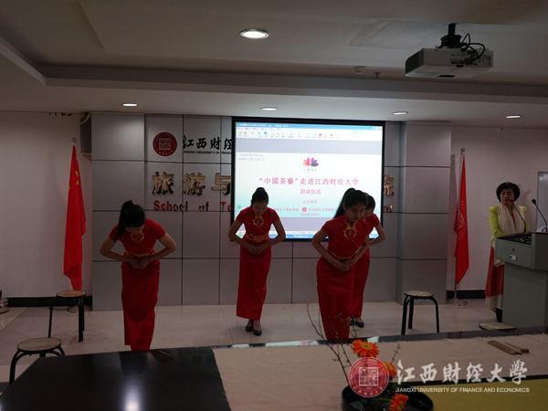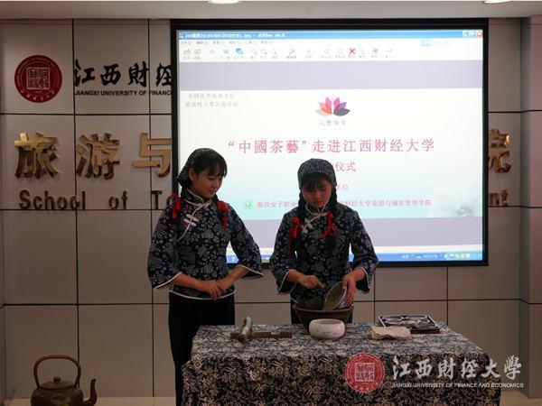 In spring, all plants sprout and camellia spread fragrance. On March 8, "Tea Art of Chinese Traditional Culture Goes to Universities" Launching Ceremony was jointly held by School of Urban and Tourism and Nanchang Women Vocational School on Jiaoqiao campus. Wang Qiao, president of JUFE, Wan Kai, secretary-general of Tourism Development Committee of Jiangxi province tourist association and Zhao Tong, chairman of Nanchang Women Vocational School attended the opening ceremony.