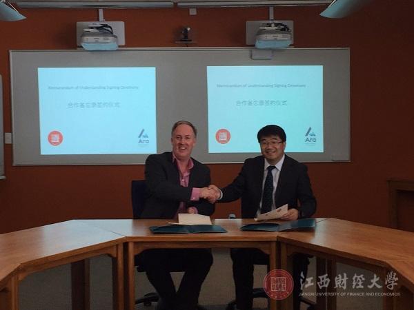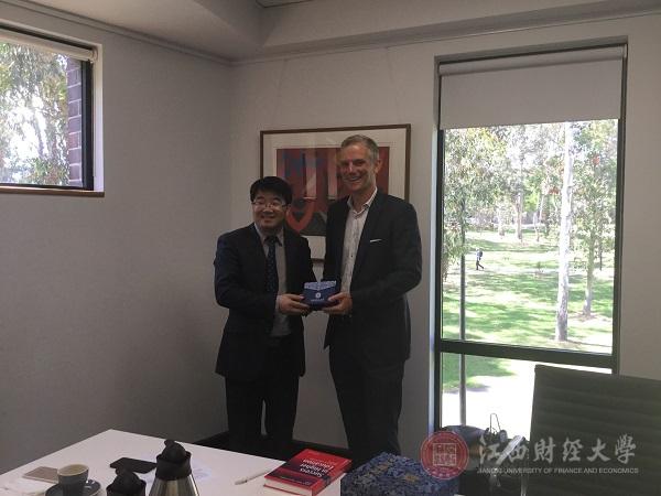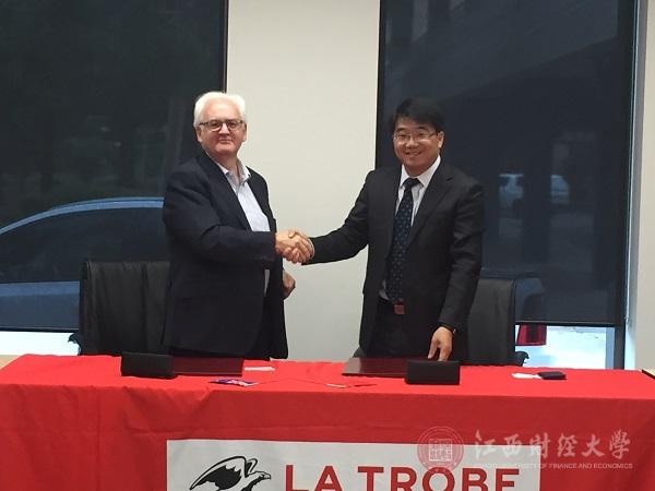 During the visit in La Trobe University(LTU), Vice President Deng and Anthony McGrew, Vice President of LTU, along with Amalia Di Iorio, Assistant Vice-chancellor, Nandi Lakshmanan, Director of Office of International Exchange and Cooperation, Chen Jianfu, Doctor of Laws, Professor John Makeham, Director of China Research Center, Heny Been-Lirn Duh, Professor of Computer-Science and Information- Technology Institute, and Han Xin, Director of International Confucius Institute had a harmonious talking. Vice President Deng introduced the history and current situation of JUFE, especially the achievements of academic teaching, scientific research and internationalized schooling, which kicks high in subject ranking issued by Chinese Ministry of Education and ranks first-class academic construction of Jiangxi Province. He also pointed out that in addition to main economic management specialties in JUFE, Information Engineering, Law and Humanities disciplines also have a leading position among domestic universities. He suggested that the two sides should promote cooperation in Business Studies as well as Information Technology, Statistics, Laws, Humanities, Public Safety, Ecological Environment and other fields. It was also proposed to promote teachers' visiting to LTU as an opportunity to improve the cooperation between the two universities. Assistant Vice President Amalia Di Iorio expressed high appreciation for internationalized schooling performance of JUFE in the hope of teachers' communication, ultimately promoting the cooperation between the two universities. Exchange of students, Dual-Degree Programs, postgraduate exchange programs, exchange of teachers and Chinese culture promotion were negotiated in details and formed a memorandum of contract.