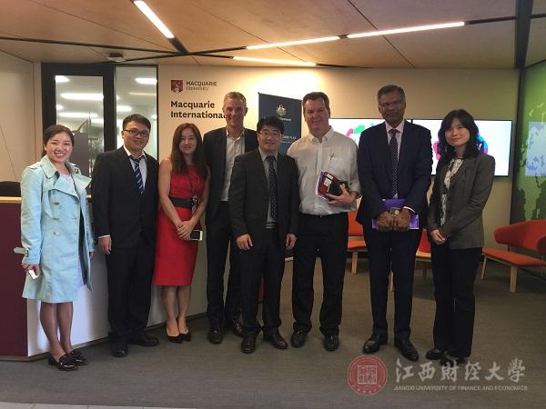During the visit in Macquarie University(MU), Vice President Deng and Mrs. Leigh Wood, Vice President of MU, Mr. David Harrison, Director of International Office, Ms. Cherilyn Liu, Manager of International Cooperation , Dr. Lorne S Cummings, Deputy Dean of Business School, Dr Rahat Munir, Director of the Department of Accounting, and Professor Yang Jian, faculty chief of Science and Engineering Faculty, had a cordial meeting. After the introduction of JUFE history,current situation and the purpose of this visit, vice President Deng indicated a good momentum and willingness to have further cooperation based on "3+2", "2+2" projects for expansion of communication at PhD level and apply fund from Ministry of Education of the “Optimal Undergraduate Program”. In view of MU’s strength in the accounting and finance, the two sides shared the idea of sending teachers for academic visiting . JUFE drew lessons from MU’s experience to apply European Quality Improvement System . Director Harrison highly praised JUFE for its schooling and gave full affirmation to Deng’s frankness and pragmatic leadership with the hope of extensive cooperation in business, humanities, art and other aspects like Deng’s hope in information engineering, statistics and laws. Through the joint efforts , Professor Yang Jian of MU was invited to the School Information Techonology of JUFE in December for further discussion of the cooperation fields and details.