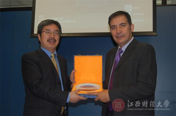 During the visit in Universidad Rey Juan Carlos, the delegation led by Prof. Jiang Jinfa had a conference with Jose Maria Alvarez Monzoncillo, the vice-president of Universidad Rey Juan Carlos, Pablo Tomas Salvadores Alonso, Administrator of International Relationship Affairs, Jose Lgnacio Fernandez Nuevo, the Director of International Development Department, and Lin Zhe, from the Simone Calvano campus. It is learned that there are over 100 students who are learning Chinese Mandarin and about to establish a Confucius Institute. The delegation showed positive support for students exchange to learn Chinese Mandarin in JUFE. Spain is an important country of “the Belt and Road Initiatives”, and Spanish is an important language of the process. The two universities had deep talks about strengthening opportunities for exchange students in Chinese Mandarin major, and exchanging teachers to teach language and professional business courses. JUFE and Universidad Rey Juan Carlos reached consensus to apply the international cooperation projects of Chinese Ministry of Commerce and the European Union by exchanging teaching staffs for lectures and cooperative research.