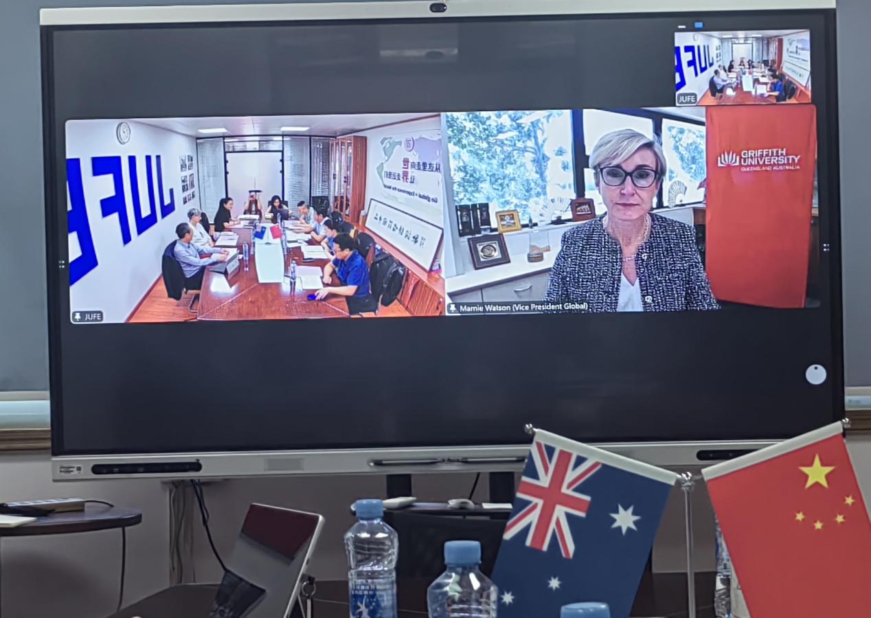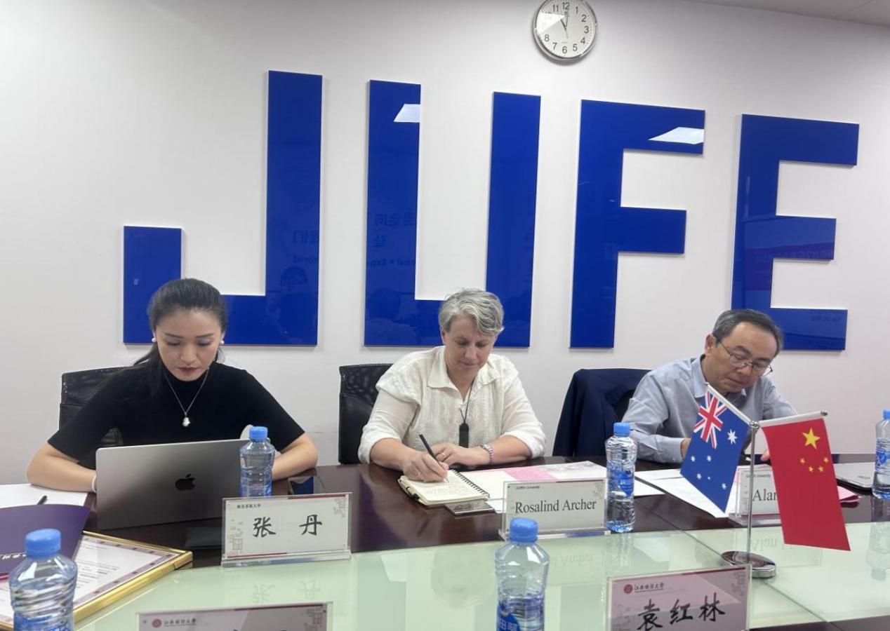 On September 23, a delegation from Griffith University, Australia, visited JUFE and convened the first management committee meeting for the Jiangxi University of Finance and Economics-Griffith Digital Intelligence School. Vice President Yuan Honglin met with the delegation. The meeting was attended by Griffith University Vice-Chancellor Marnie Watson, Faculty of Science Academic Dean Rosalind Archer, School of Information and Communication Technology Dean Alan Liew, International Department Greater China Regional Marketing Director Jennifer, as well as relevant heads from JUFE’s School of Computer Science and Artificial Intelligence and the Digital Intelligence School. The meeting was chaired by Yuan Honglin.