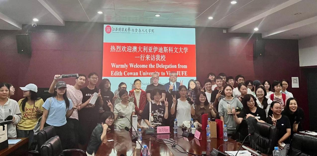 On the afternoon of October 17, 2025, the School of Sociology and Humanities of JUFE hosted a delegation from Edith Cowan University (ECU) in Australia, including Professor Mark McMahon. The delegation delivered presentations on topics such as talent cultivation and innovative education in the era of artificial intelligence. Both parties engaged in discussions on how to pursue deeper collaboration in the future.