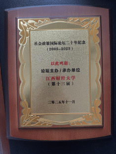 Marking the 20th anniversary of the International Forum on Social Policy, a special commemorative ceremony was held. Professor Guan Xinping, the former Chairman of the Social Policy Research Committee of the Chinese Sociological Association, Researcher Yang Tuan, the former Chairman of the Social Policy Research Committee of the Chinese Sociological Association, and the Secretary-General Fang Lijie of the Social Policy Research Committee of the Chinese Sociological Association presented commemorative plaques to universities and research institutions that had hosted/organized the International Forum on Social Policy over the past 20 years. Professor Hong Lumin accepted the commemorative plaque on behalf of JUFE (host of the 13th forum).
