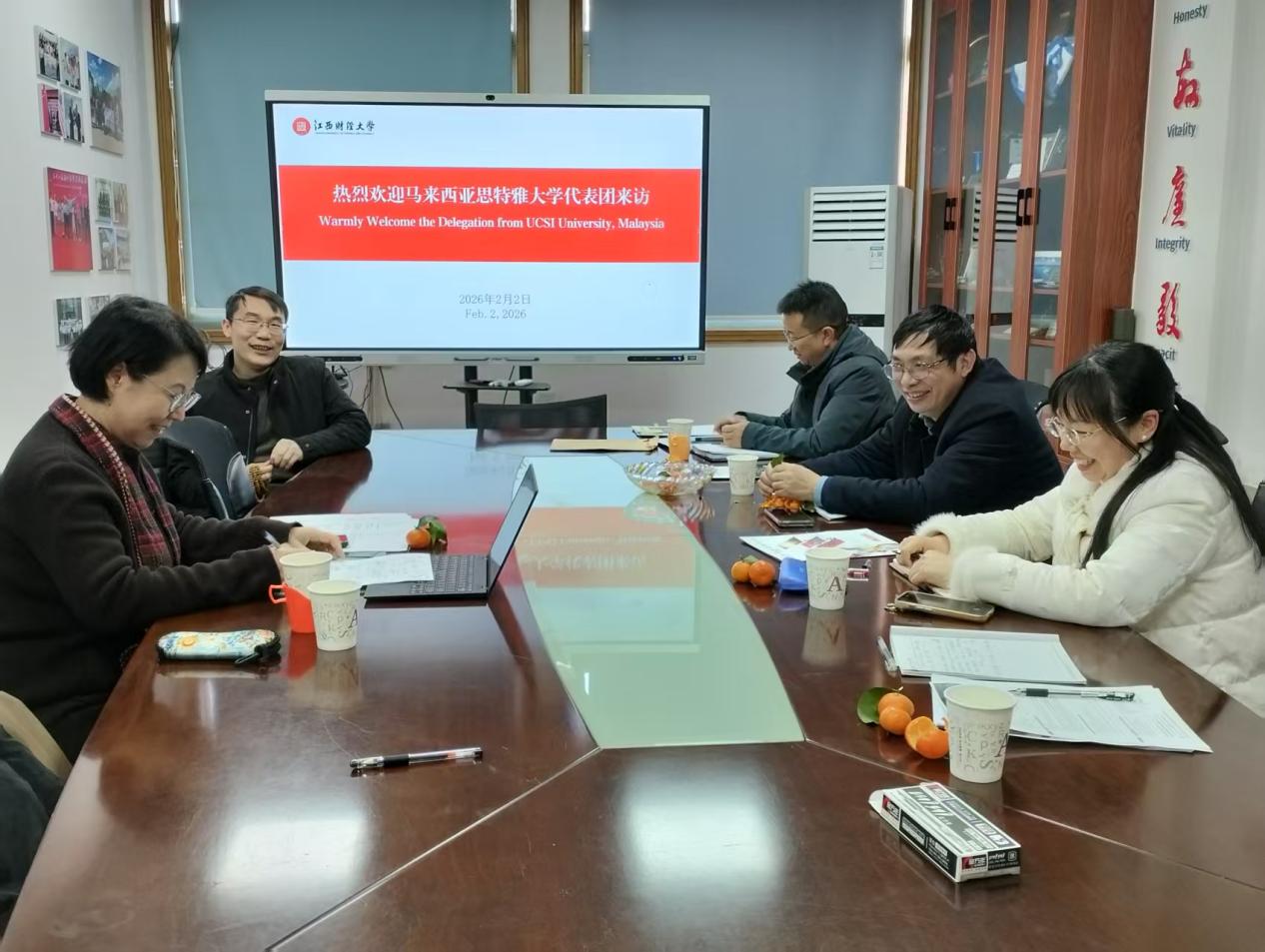 On February 2, a delegation from UCSI University of Malaysia visited Jiangxi University of Finance and Economics for exchange. Representatives from the Office of International Cooperation and Exchange and School of Sociology and Humanities warmly received the delegation. Both sides held a focused meeting on deepening cooperation in areas such as international communication and ESG (Environmental, Social and Governance), reaching multiple agreements.